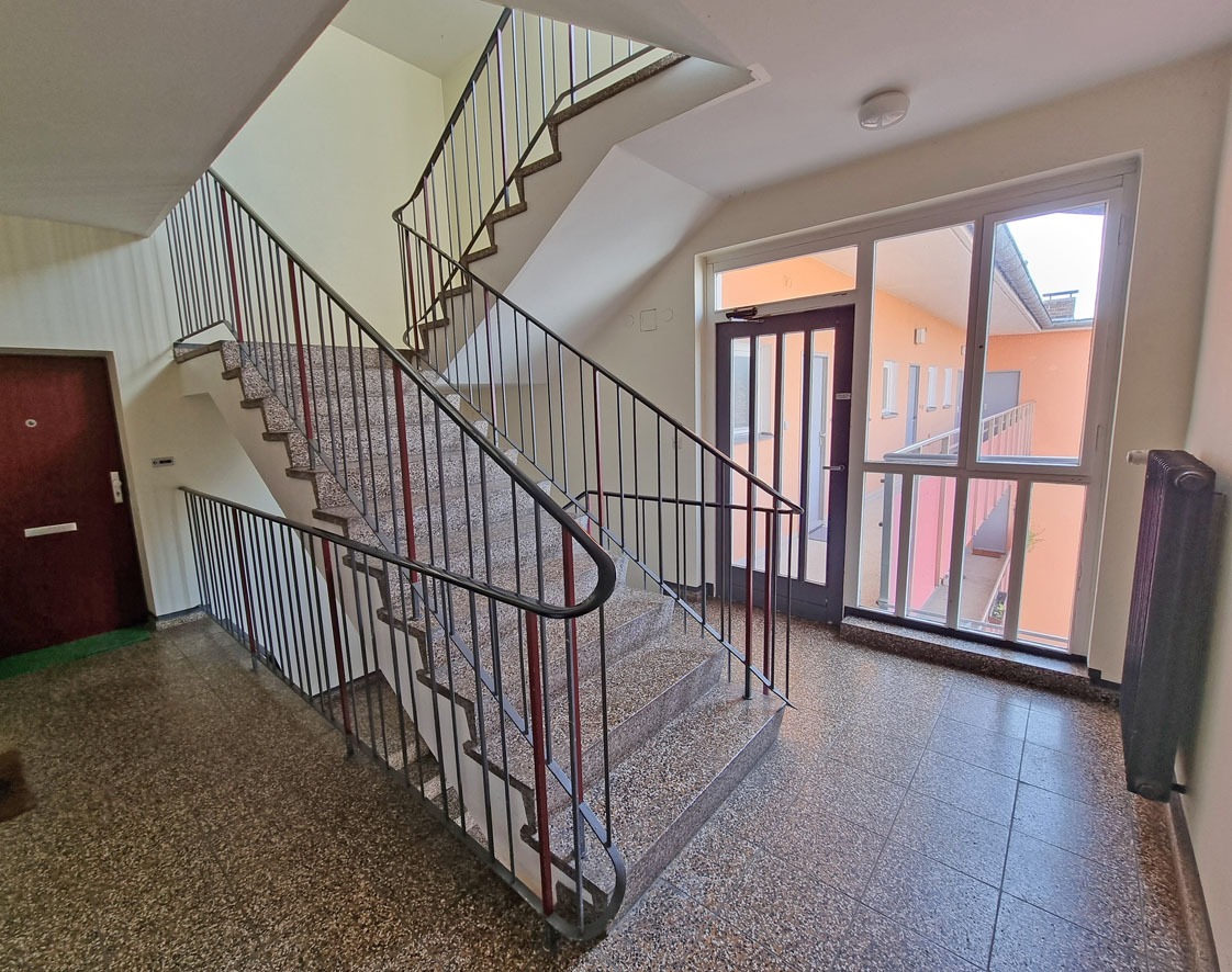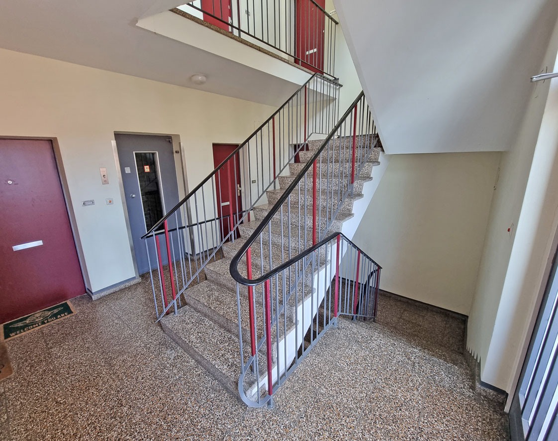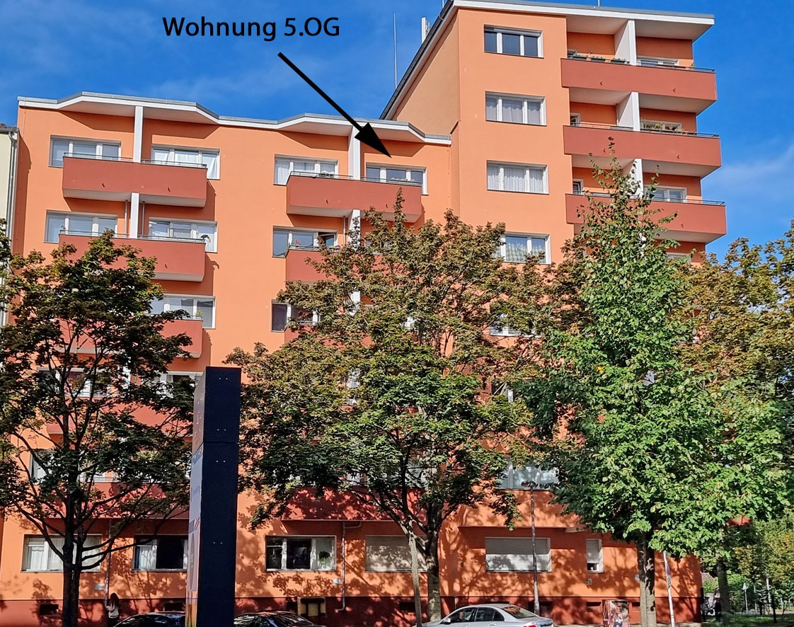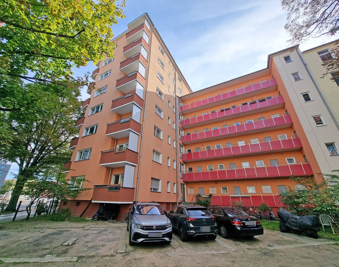 Das Baujahr des Gebäudes wird mit 1956 angegeben und besteht aus zwei Hausteilen, welche aus sechs, bzw. acht Etagen bestehen. Sowohl der Außenbereich, wie auch die innenliegenden Gemeinschaftsflächen (wie Treppenhäuser u.a.) machen einen gepflegten Eindruck.