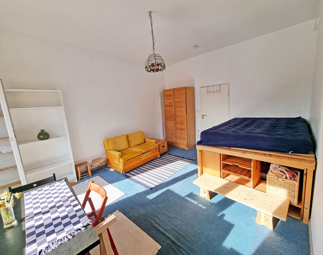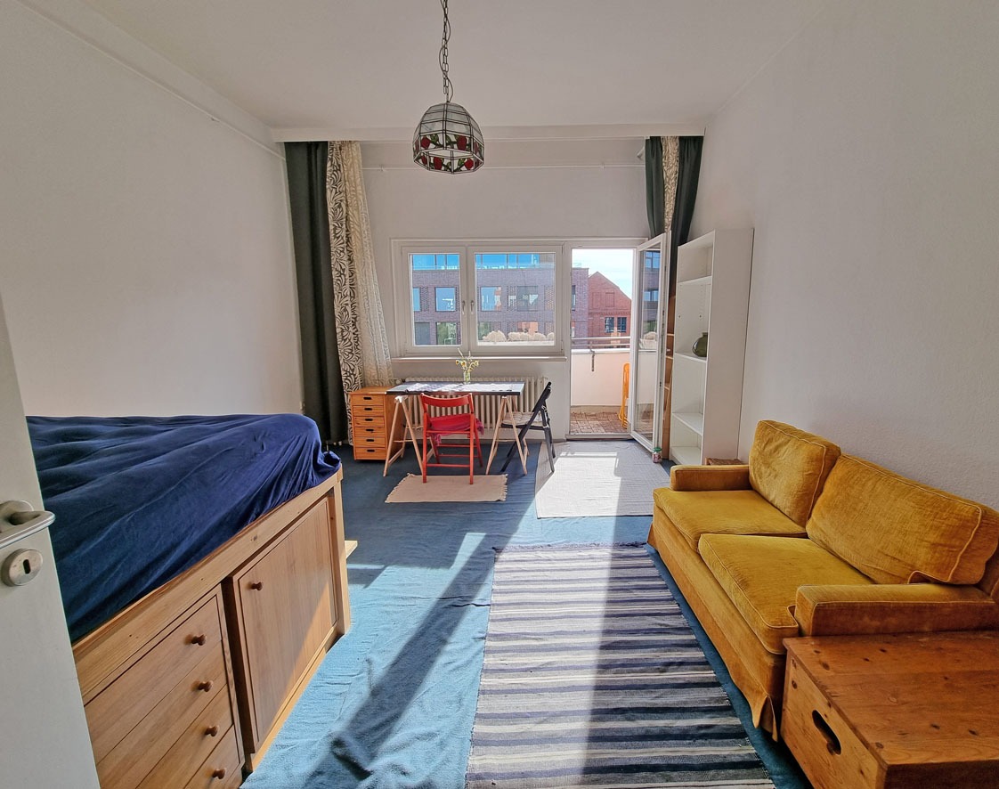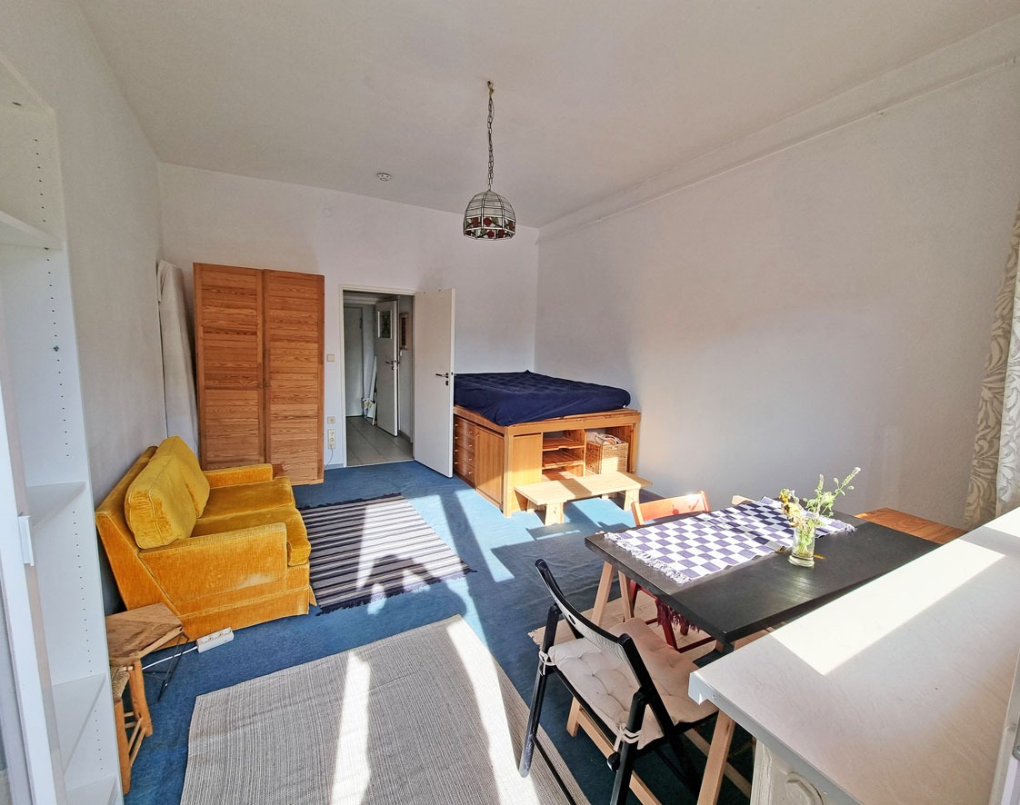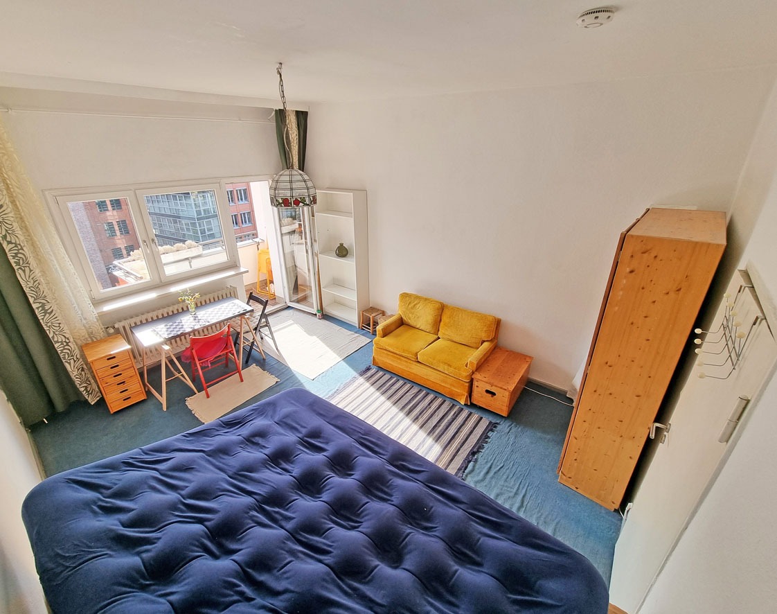 Das kompakte City-Apartment verfügt über ein helles ost-/südseitig gelegenes Zimmer mit Balkon, einem Wannenbad, einer Einbauküche, Windfang, Diele und kleiner Abstellkammer. Im Sondereigentum der Wohnung wurden die frontseitigen Fenster (2015) und das Bad (ca. 2002) erneuert. Eventuelle Renovierungskosten für auffrischende Malerarbeiten und Bodenbelag im Zimmer wurde bei der Preisfindung bereits berücksichtigt.