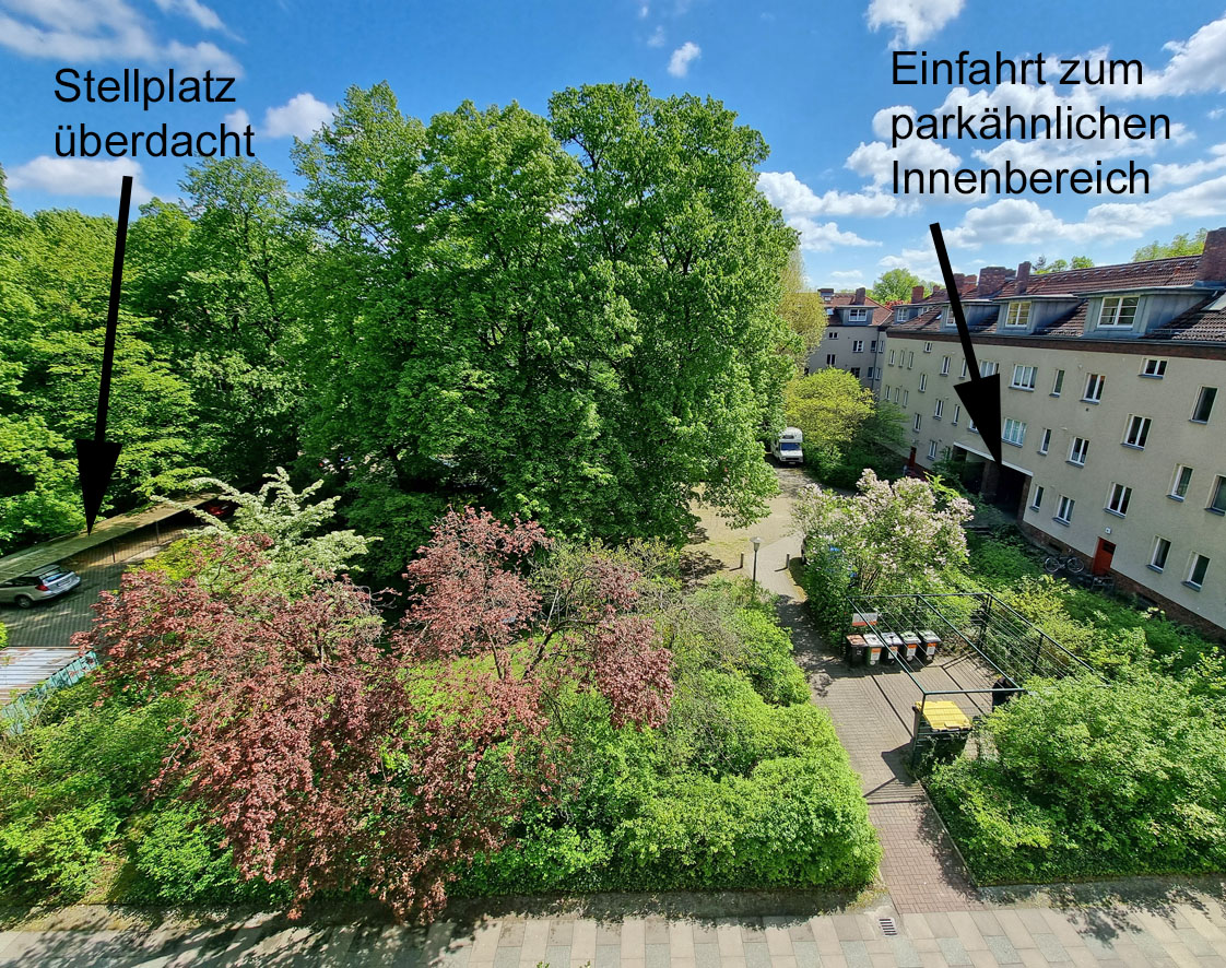 Zur Wohnung gehört (jeweils grundbuchlich gesichert) das Sondereigentum an einem Keller und das Sondernutzungsrecht an einem hofseitig gelegenen, überdachten Stellplatz. Dieser ist derzeit vermietet, kann aber frei geliefert werden.