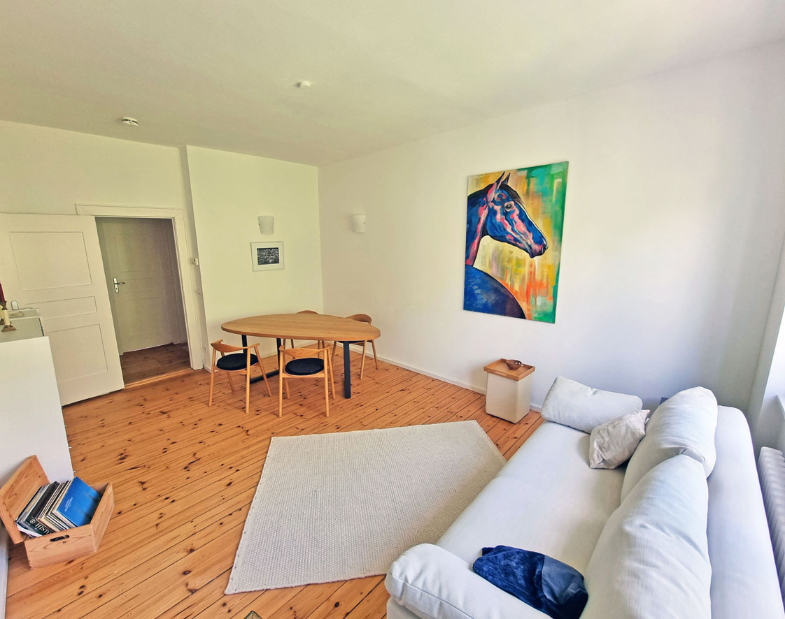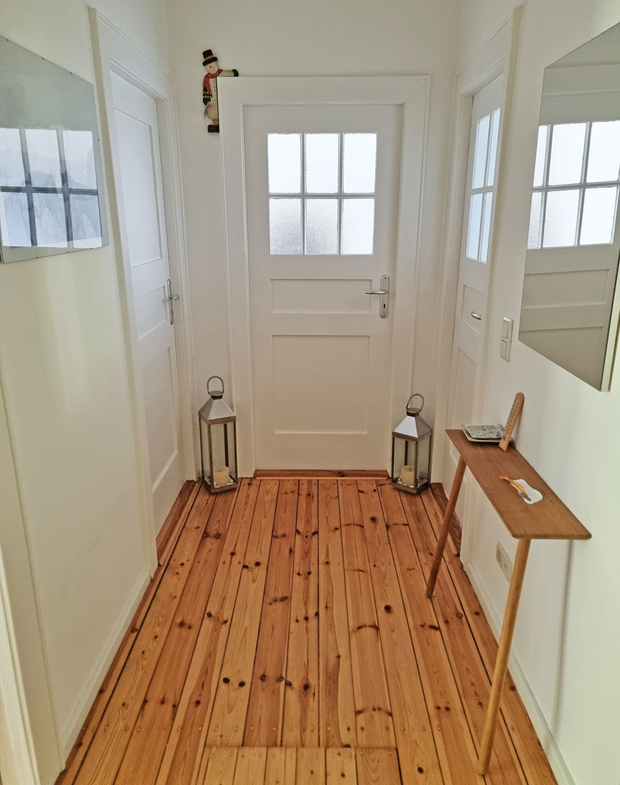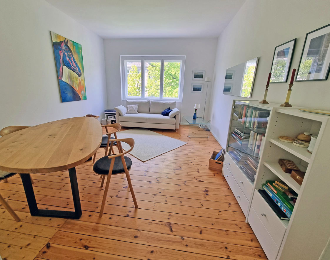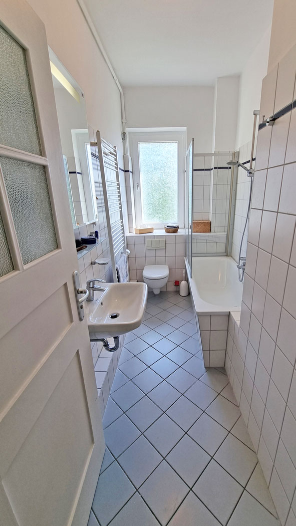 Die Wohnung selbst macht ebenfalls einen äußerst gepflegten Eindruck, wobei die Kombination aus Altbau-Charme (insbesondere durch den abgezogenen Dielenboden, den hohen Decken, den Altbau-Doppelkastenfenstern in den Räumen 1-3 und den nachempfundenen Türelementen) und den modernen Elementen von Küche, Bad und den erst in 2018 durchgeführten Renovierungen eine besondere Wohnwertqualität beinhaltet.