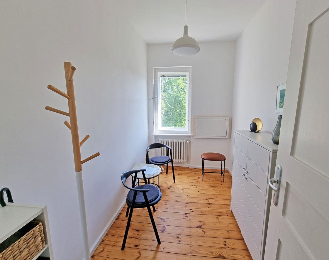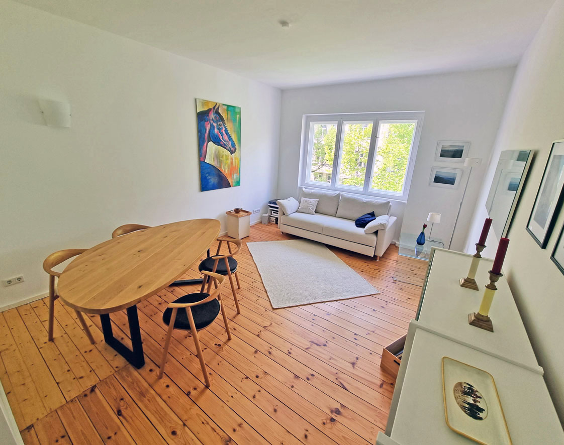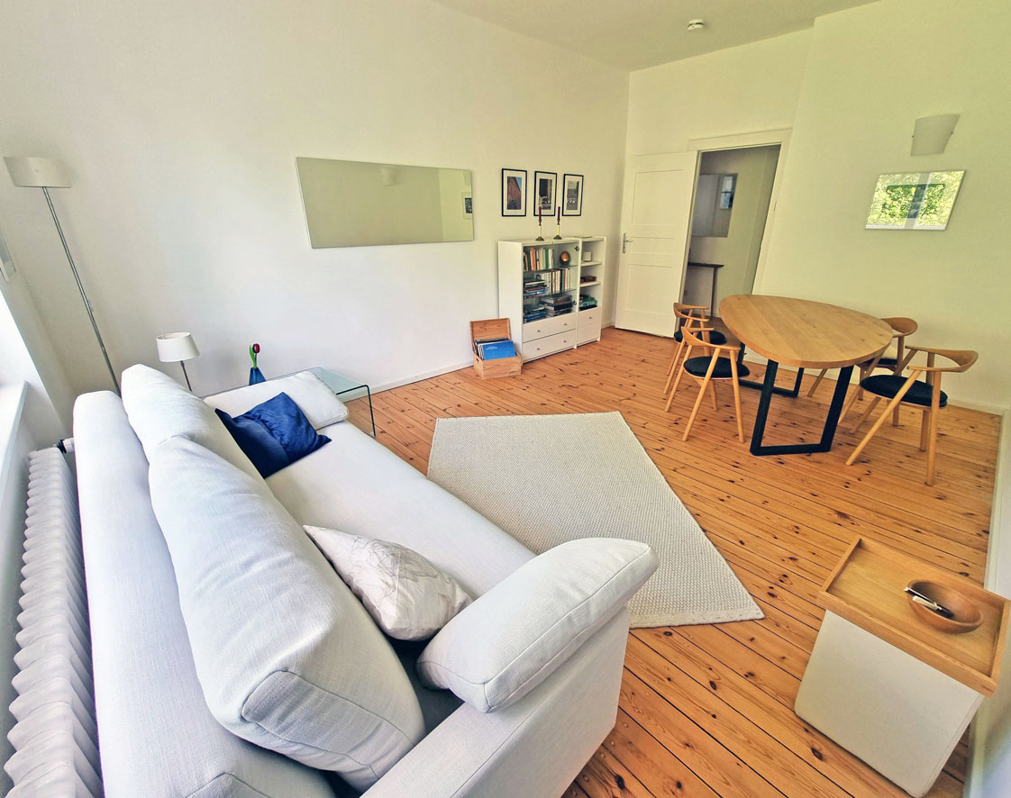 Die Wohnung selbst macht ebenfalls einen äußerst gepflegten Eindruck, wobei die Kombination aus Altbau-Charme (insbesondere durch den abgezogenen Dielenboden, den hohen Decken, den Altbau-Doppelkastenfenstern in den Räumen 1-3 und den nachempfundenen Türelementen) und den modernen Elementen von Küche, Bad und den erst in 2018 durchgeführten Renovierungen eine besondere Wohnwertqualität beinhaltet.