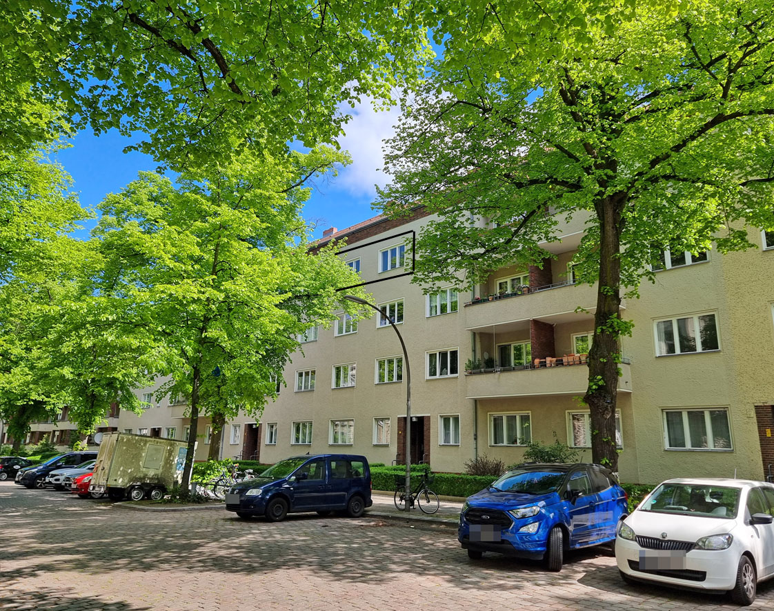 Das Baujahr des Hauses wird mit ca. 1928 angegeben. Es ist Teil eines Gesamtensembles, welches sich 3-geschossig in geschlossener Bauweise ringförmig über mehrere Straßen zieht und im Innenbereich eine parkähnlich angelegte Grünfläche mit KFZ-Stellplätzen bietet.