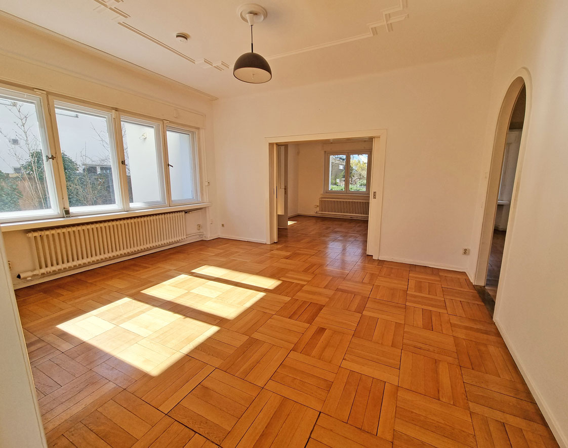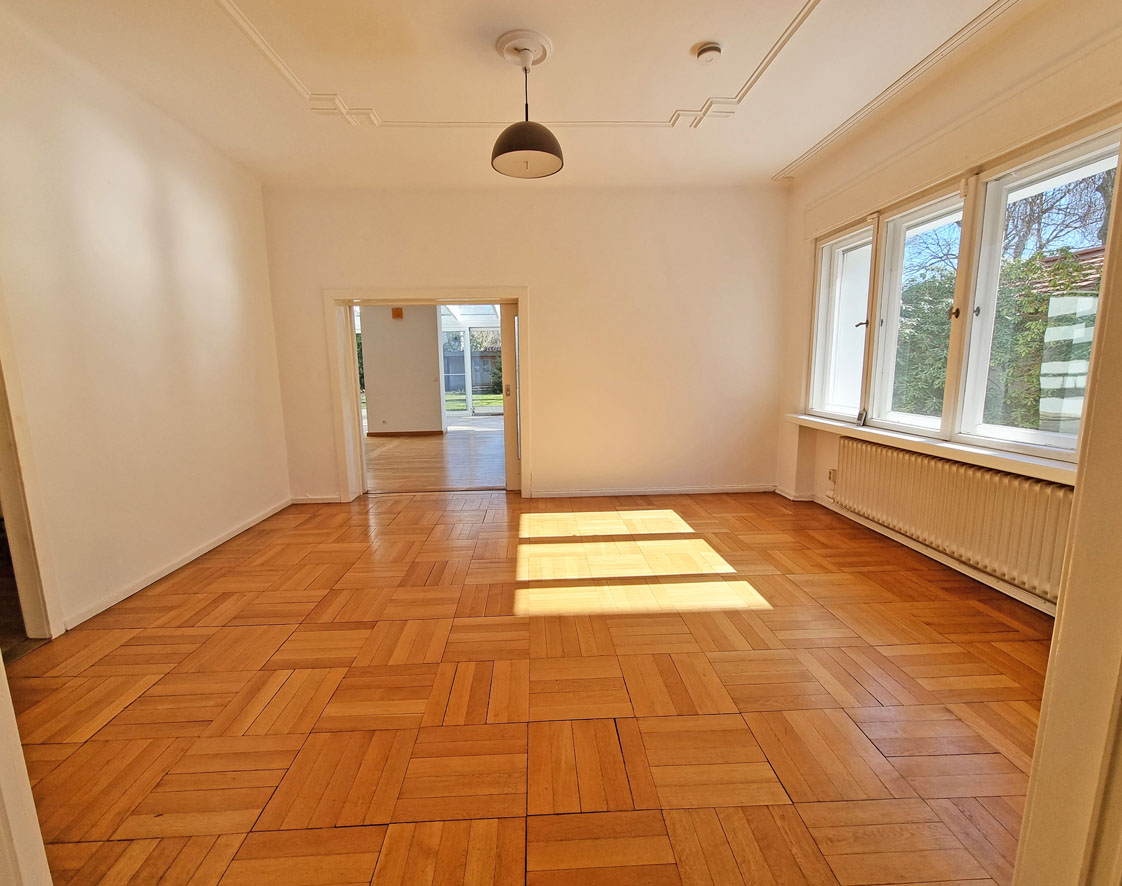 Bei der Immobilie handelt es sich ursprünglich um einen traditionellen und sehr beliebten Massiv-Baukörper der 1930iger Jahre im quadratischen Grundschnitt mit den seinerzeit herrschaftlichen Villenmerkmalen. Diese spiegeln sich unter anderem auch wider in den charmanten Altbau-Merkmalen wir Parkettböden, Fenster- und Türelementen u.v.m. Es macht sowohl vom äußeren Erscheinungsbild, wie auch im Innenbereich einen gepflegten Eindruck.