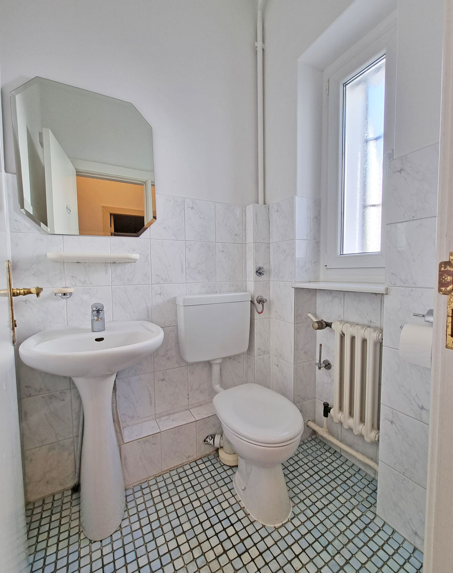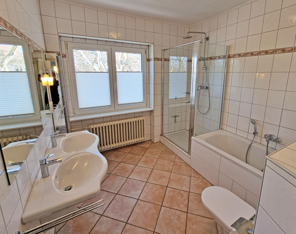 Hier sind 2,5 Zimmer (Raum 8/9/10) mit einem Wannenbad als zusätzliche Rückzugsfläche oder zur allgemeinen Verwendung verfügbar.