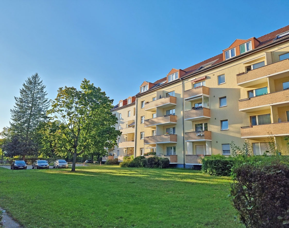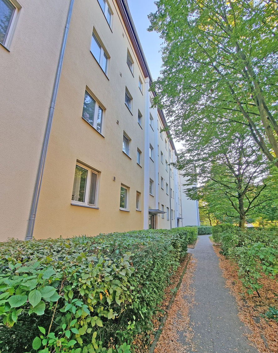 Die hier zum Verkauf stehende Wohnung befindet sich straßenabgewandt in der mittleren Reihe im Hochparterre. Das ca. 26m² große Wohnzimmer und der Balkon mit schönem Grünblick sind südseitig ausgerichtet.