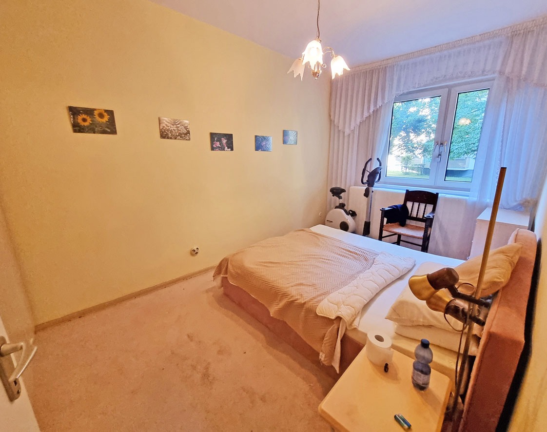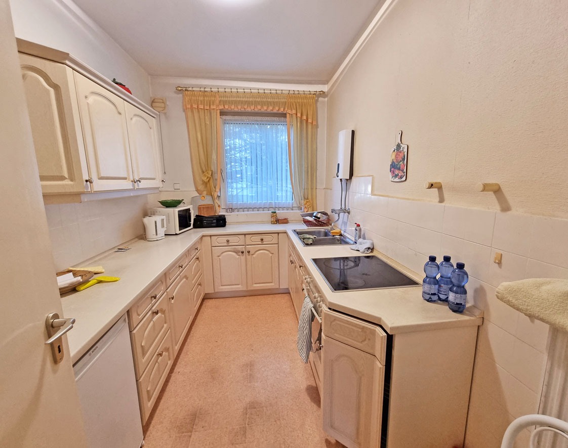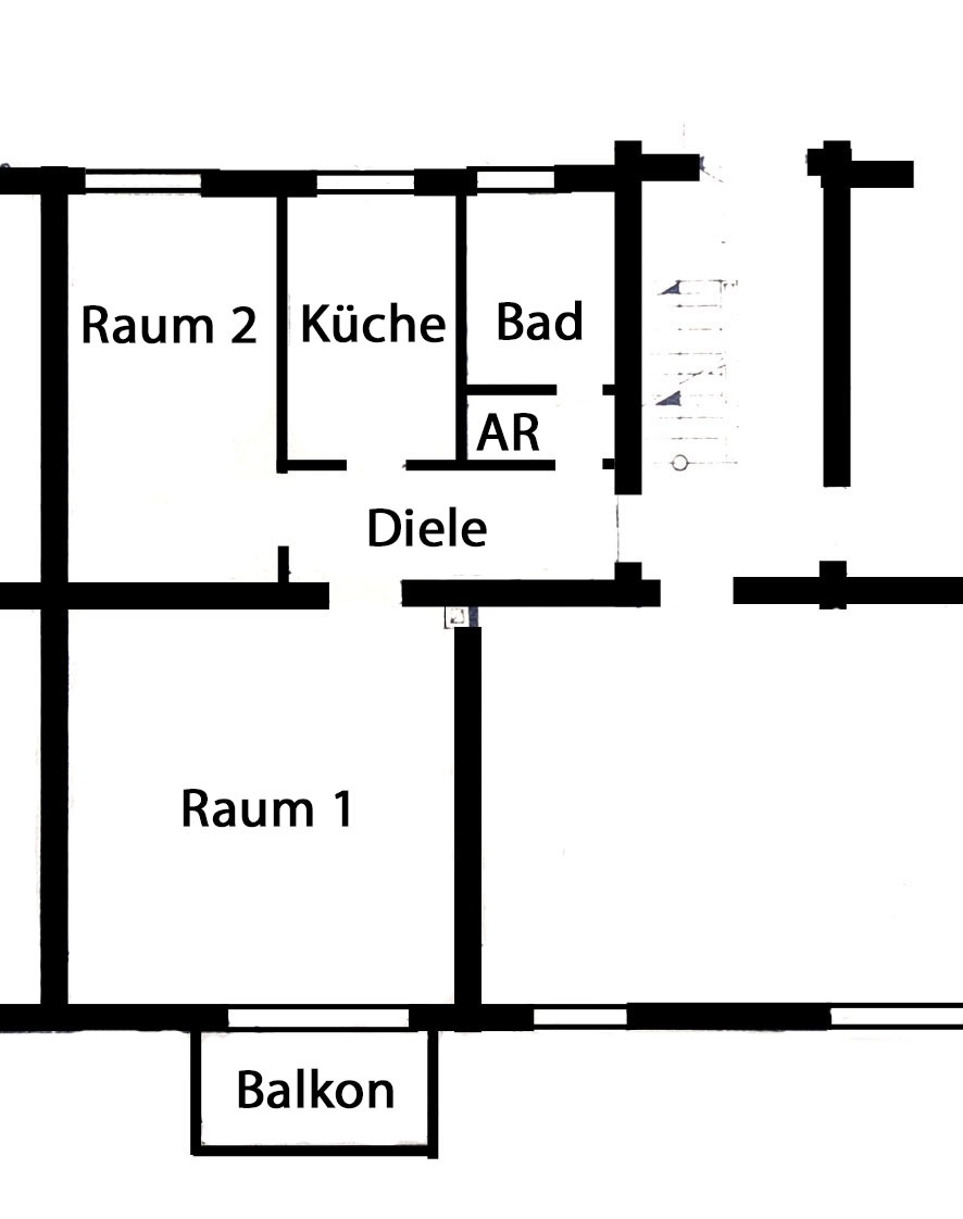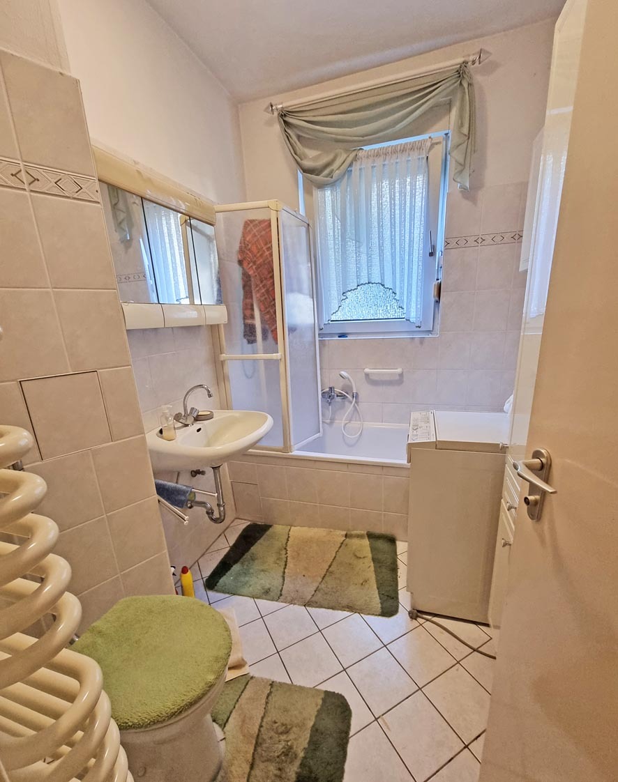 Die Wohnung stellt sich als gepflegt in baujahrestypischem Standard dar. Neben dem großen Wohnzimmer und gut nutzbarem Balkon verfügt das Schlafzimmer über einen guten Raumschnitt. Die Einbauküche in U-Form bietet eine große Arbeitsfläche. Das geflieste Wannenbad ergänzt neben Diele und Abstellnische das Raumangebot.